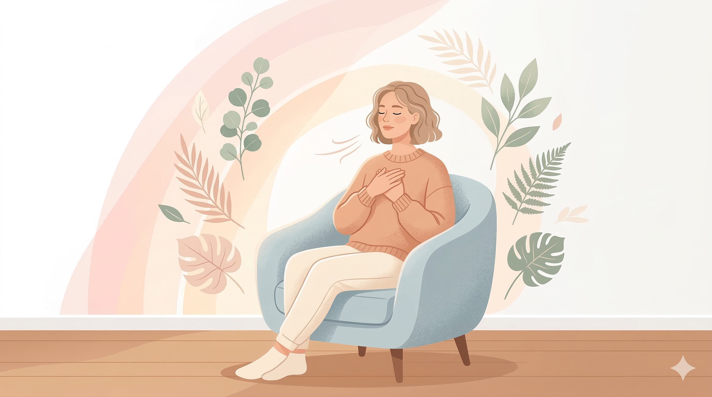 - 복식 호흡: 가슴이 답답할 때 천천히 코로 들이마시고 입으로 내뱉는 복식 호흡이 심신 안정에 도움을 줍니다.