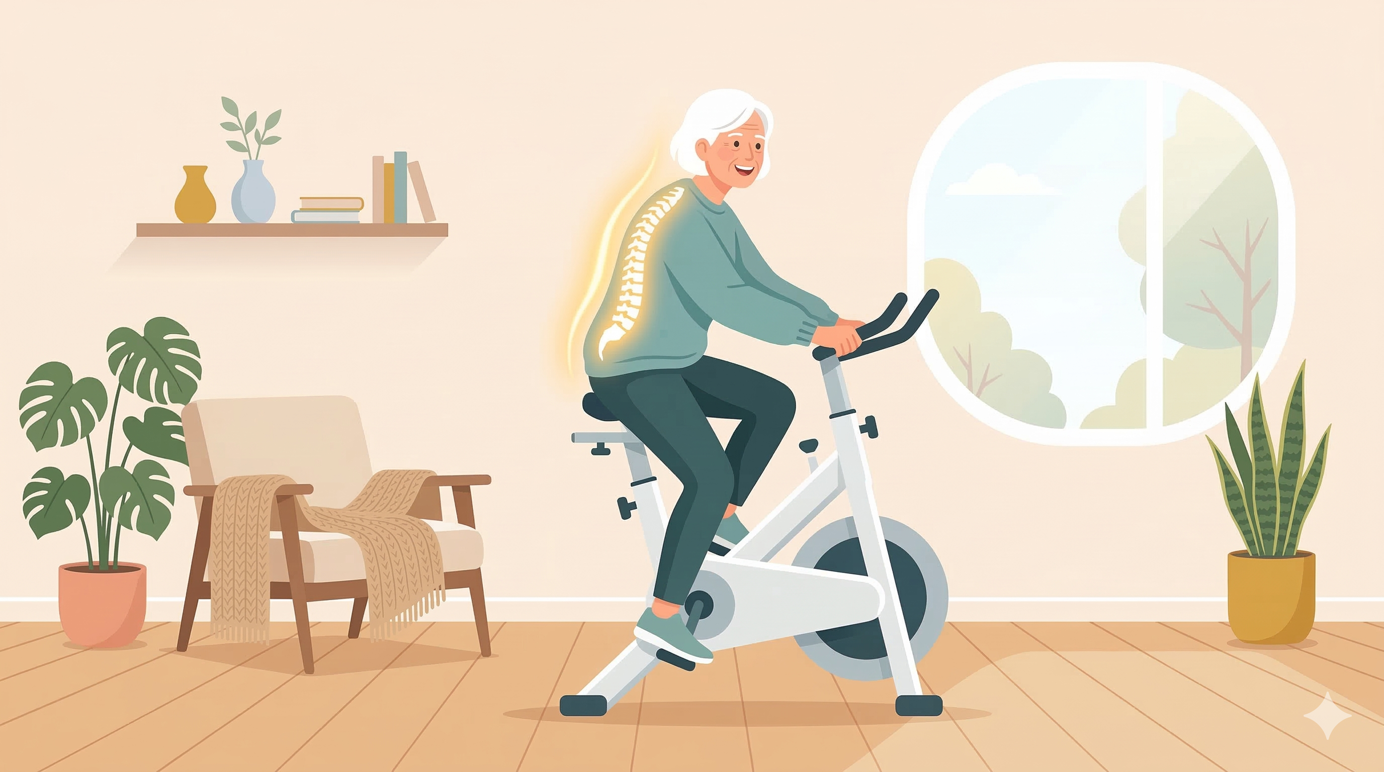 - 실내 자전거와 코어 운동으로 척추 근육을 지키세요.